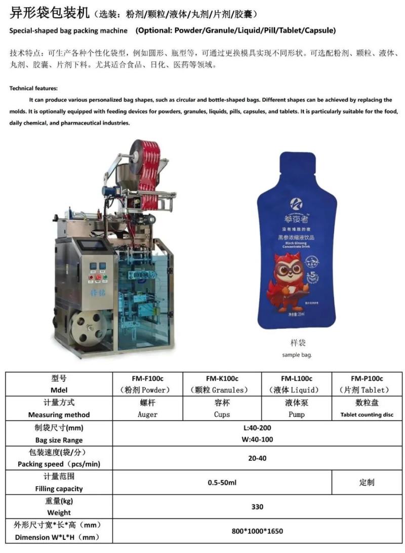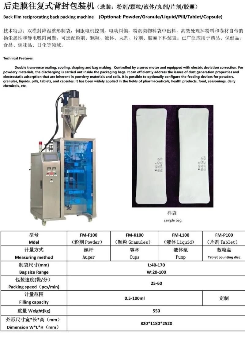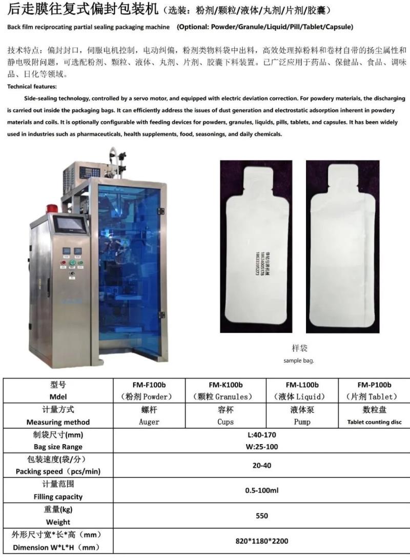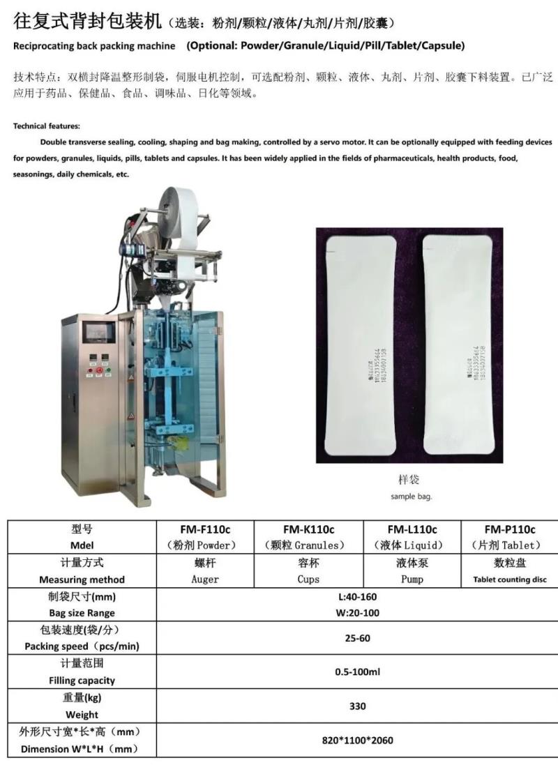 唐山锋铭包装机械有限公司是一家专业从事定制多列、异形及生产线研发、制造、销售、售后服务于一体的生产企业。锋铭机械以科技为先导、以质量求生存、以诚信求发展,不断开拓创新,自主研发生产的“锋铭”牌DXD系列自动包装机已形成粉剂、颗粒、液体、丸剂、胶囊、片剂、混合物料、电子秤等多种系列产品。广泛使用于医药、食品、化工、兽药、农药、种子等行业的多列和单列背封、异形袋、三边封、四边封、枕形封合等多种袋型包装生产线。袋形外观整齐美观,机器性能稳定可靠。自动完成制袋、封合、整形、计量、充填、打码、多袋数分切、计数、重检、金检、覆膜、装箱、码垛等工序。符合国家对医药食品行业的GMP认证要求、欧盟CE认证等。公司产品不仅畅销全国各地,还远销到美国、俄罗斯、韩国、日本、新加坡、马来西亚、澳大利亚等多个国家和地区,深受国内外用户的好评。锋铭机械将以领先的技术,精良的产品,优质的售后服务,恭候广大用户光临惠顾,真诚合作,成为共同发展的亲密伙伴!
