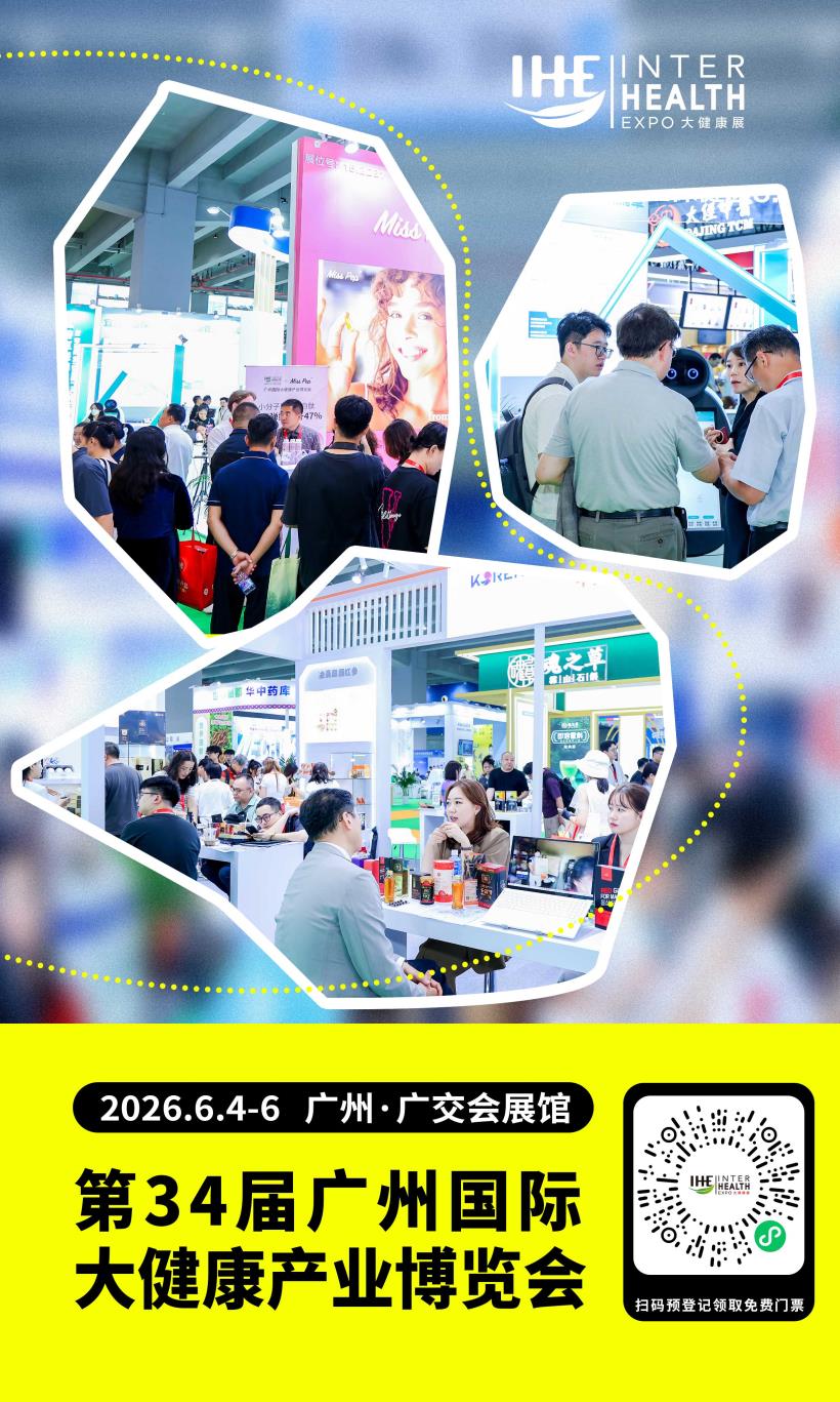 第34届广州国际大健康产业博览会(IHE China)将于2026年6月4-6日在广州广交会展馆举行,诚挚邀请您来参展/参观!