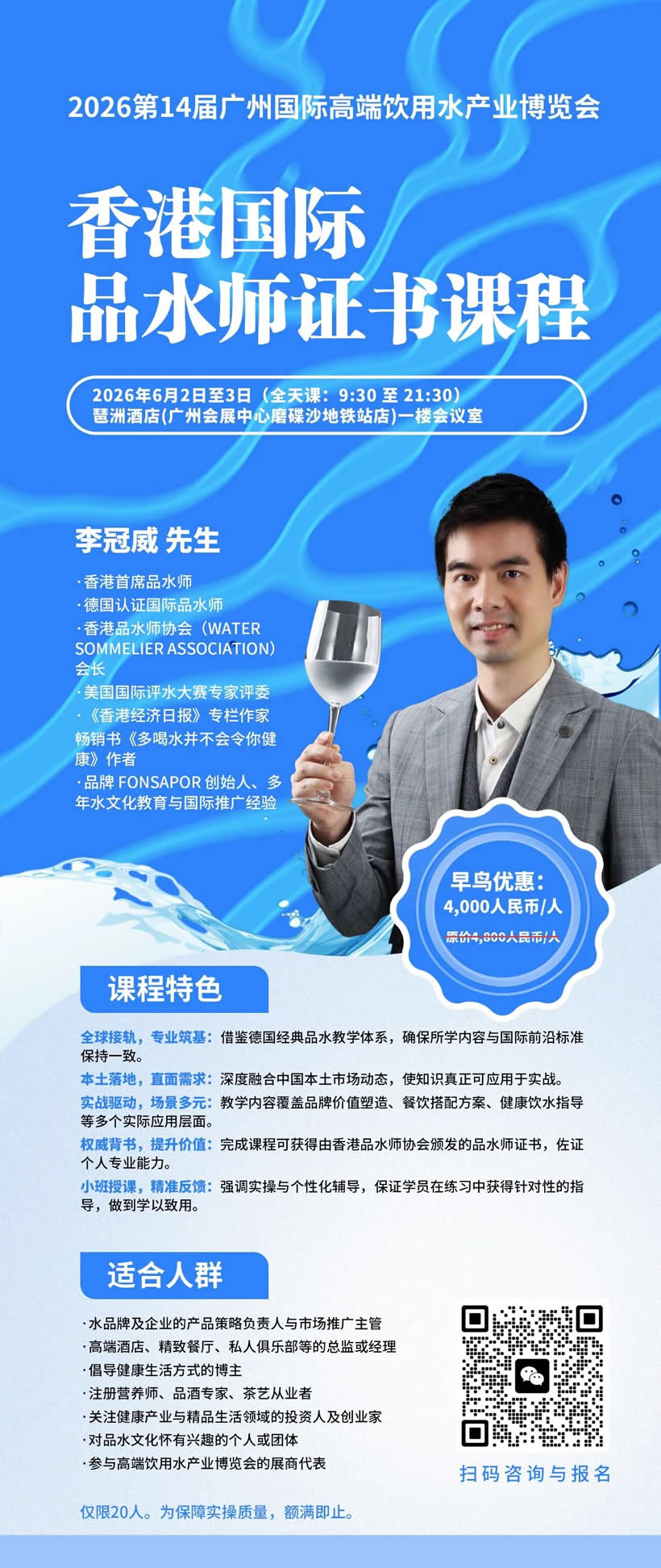 香港国际品水师证书课程:早鸟优惠,仅限20人,额满即⽌!