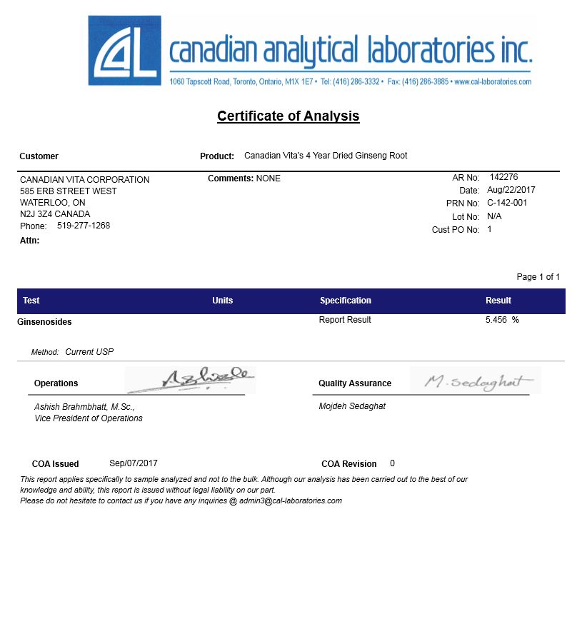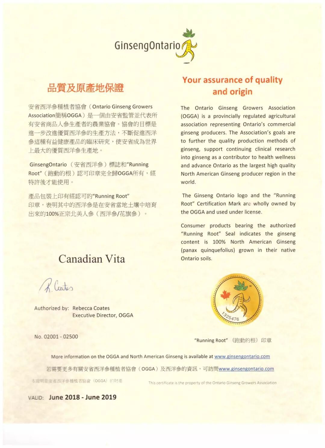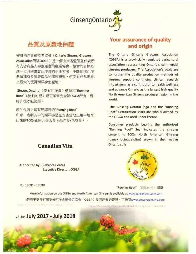 产品得到安大略省西洋参种植者协会认可