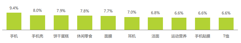 2019年90/95后减肥塑身产品消费群关联购买TOP10品类